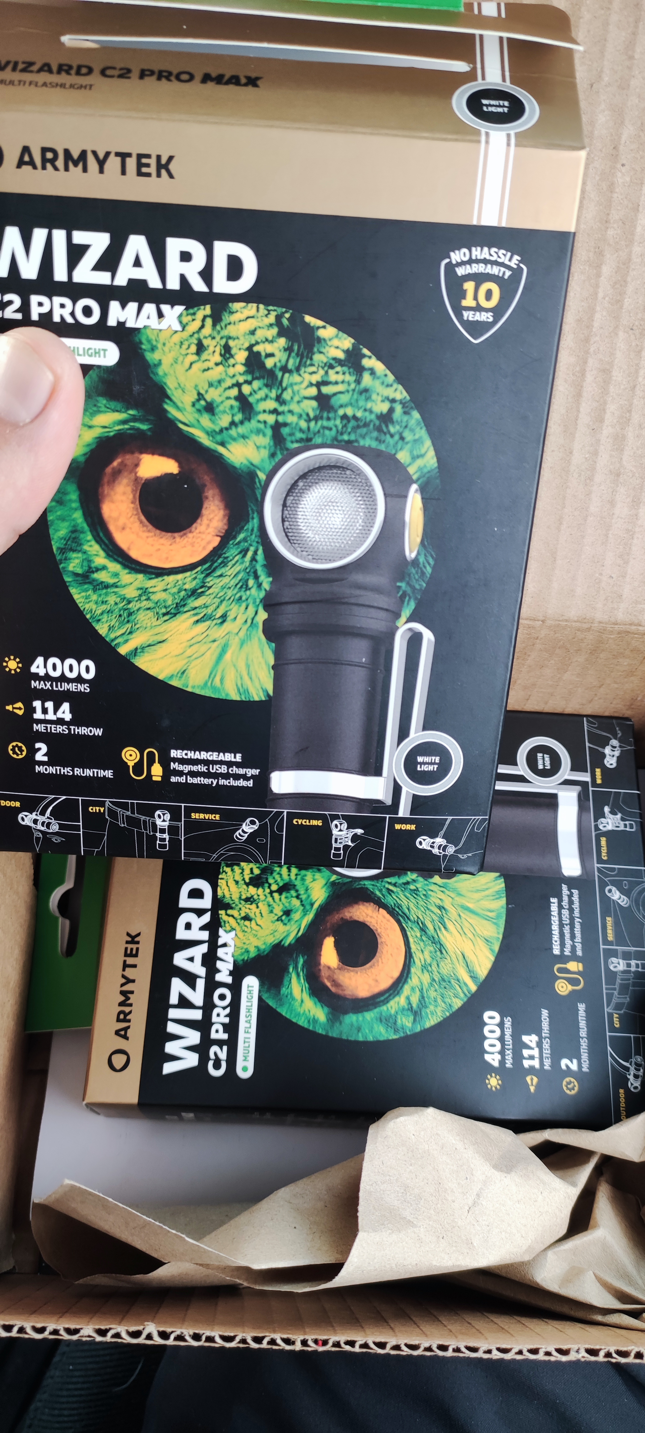 В действии фонарь далеко светит, удобная доставка, все хорошо упаковано. Будем пробовать на охоте- рыбалке